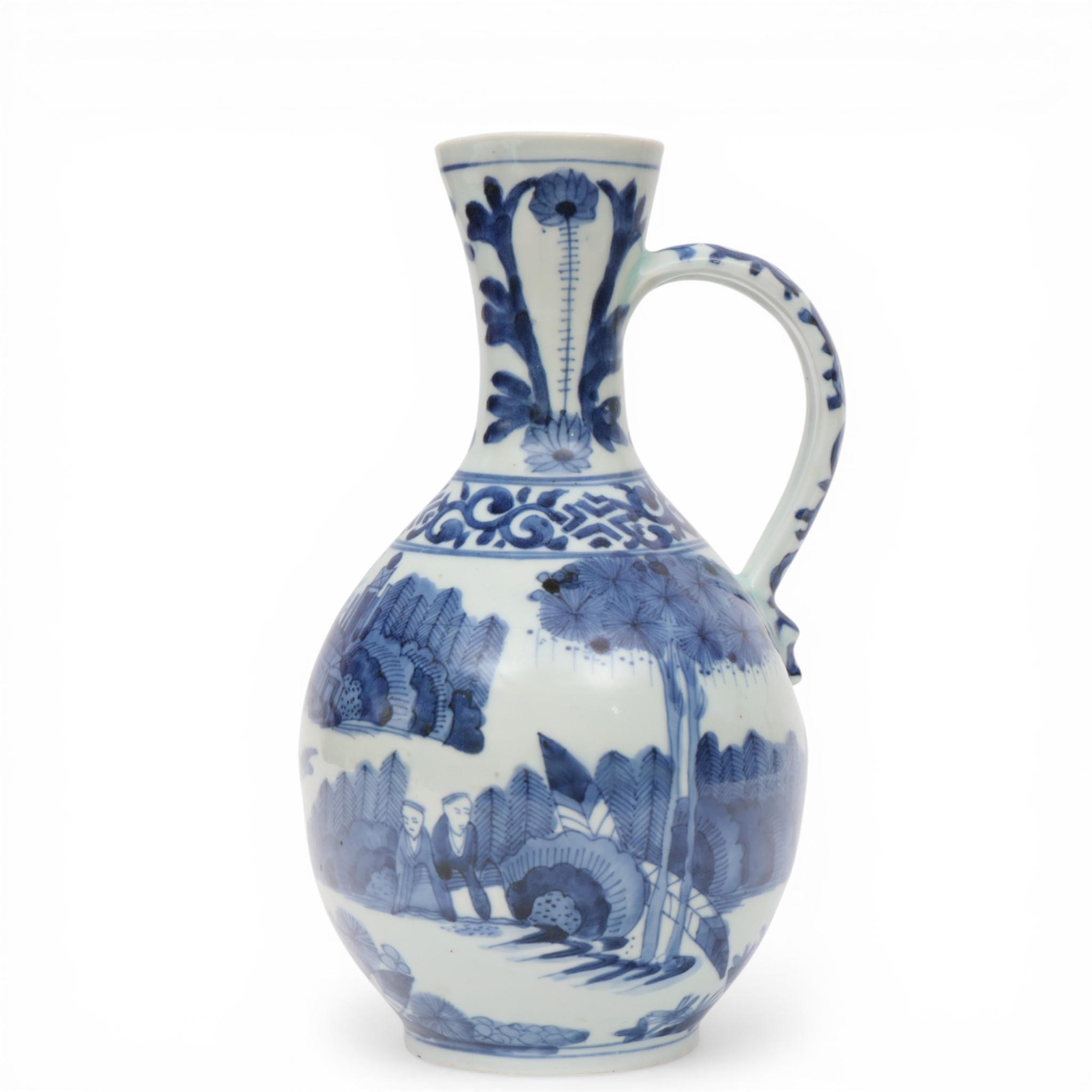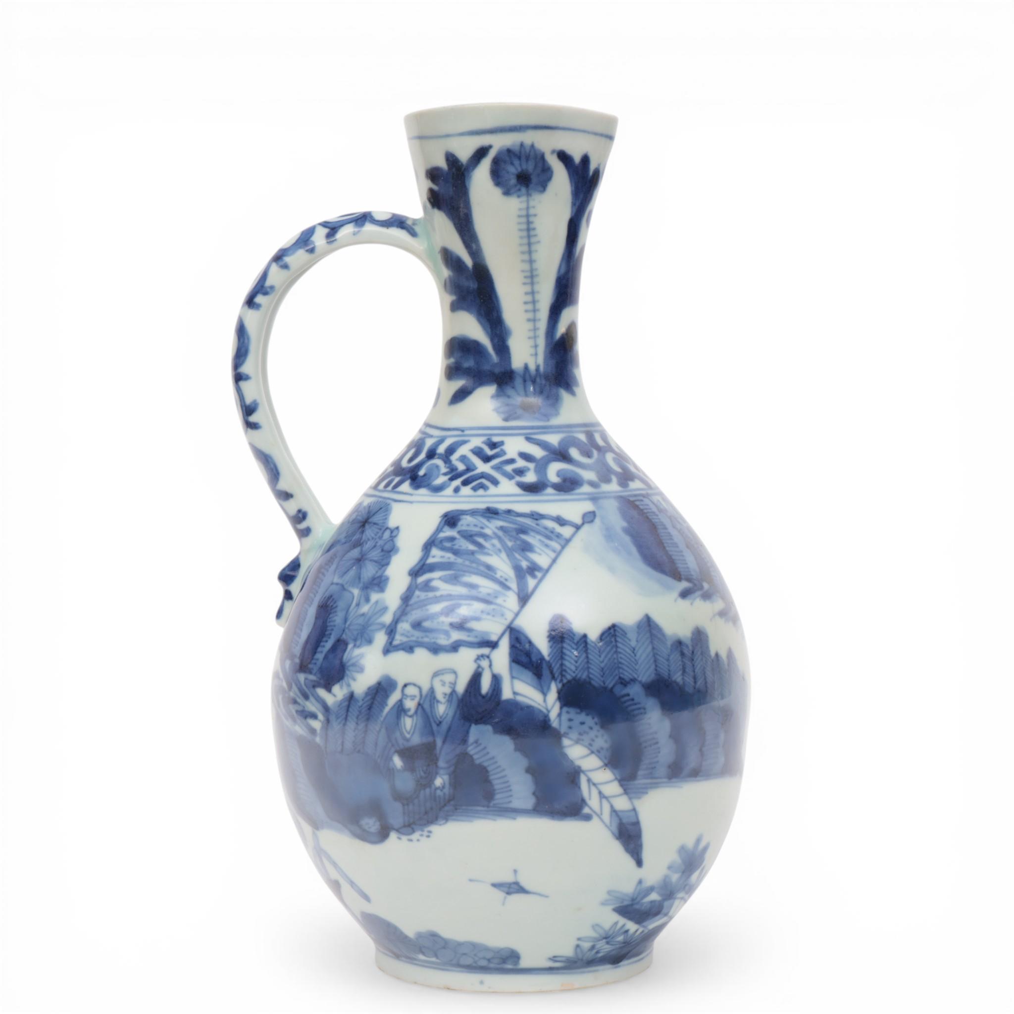 Japan, an Arita blue and white porcelain Transitional-style ewer, Edo period (1603-1868),