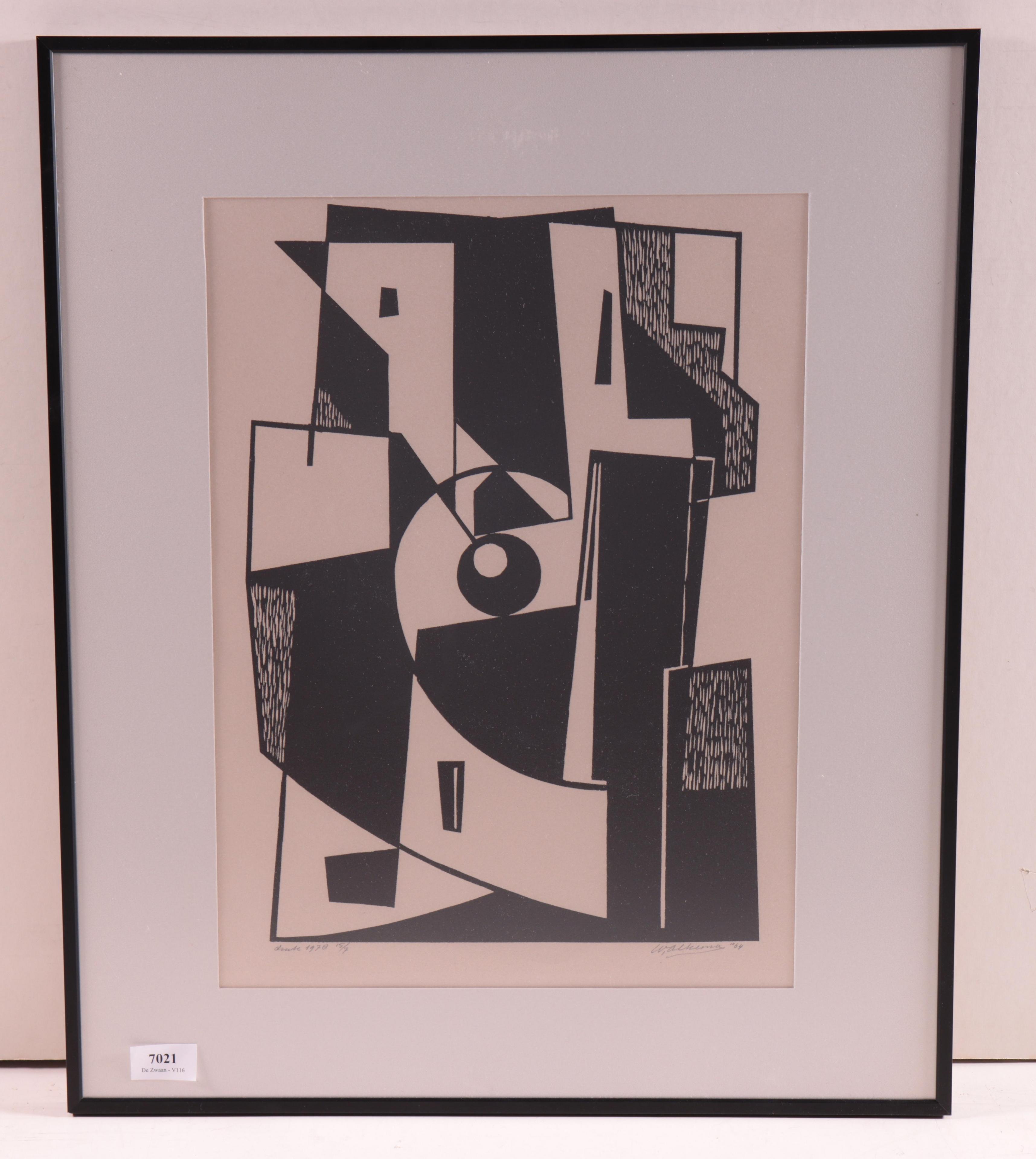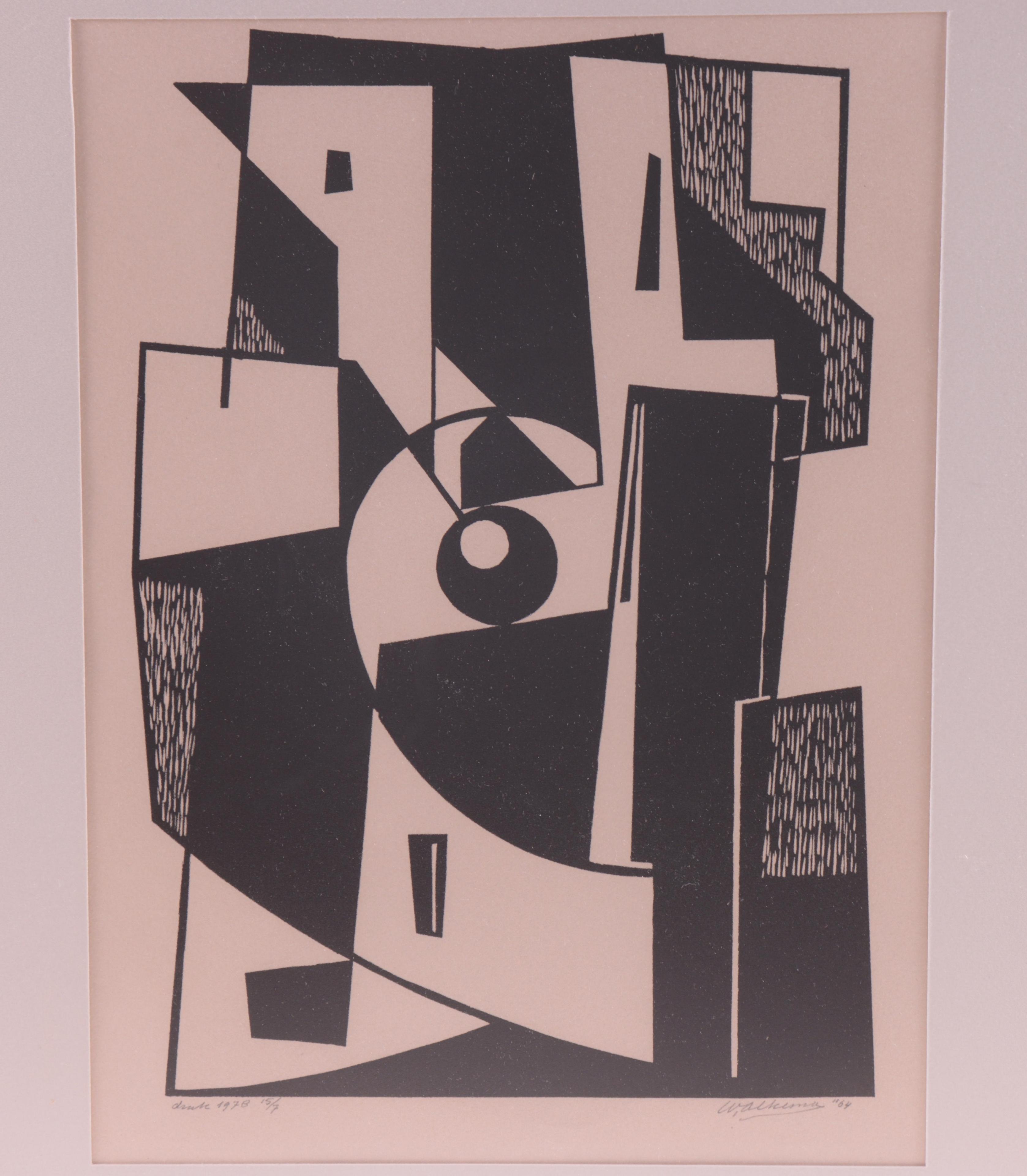 linosnede, 15/7, gedateerd '64 en 1978, 45 x 33 cm.