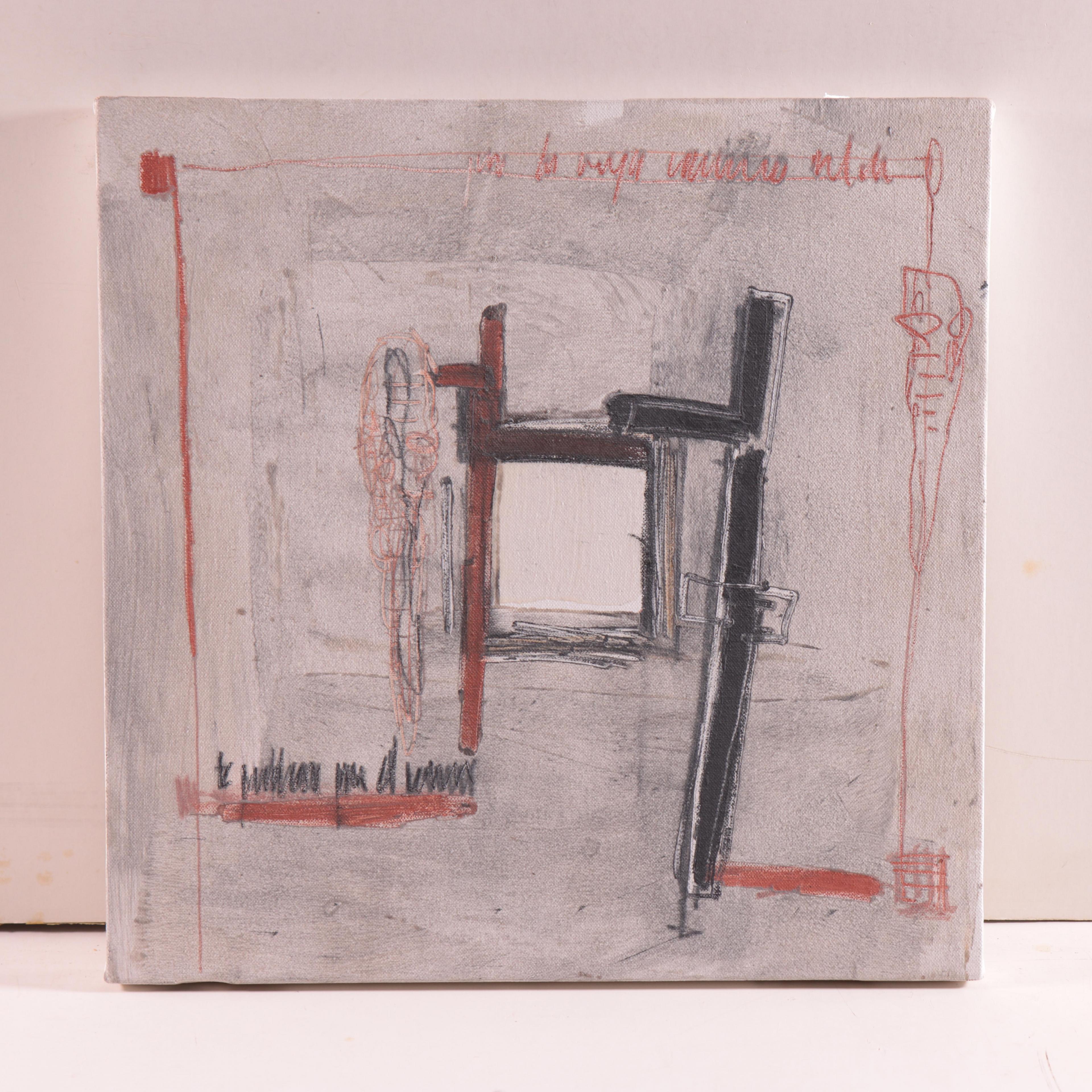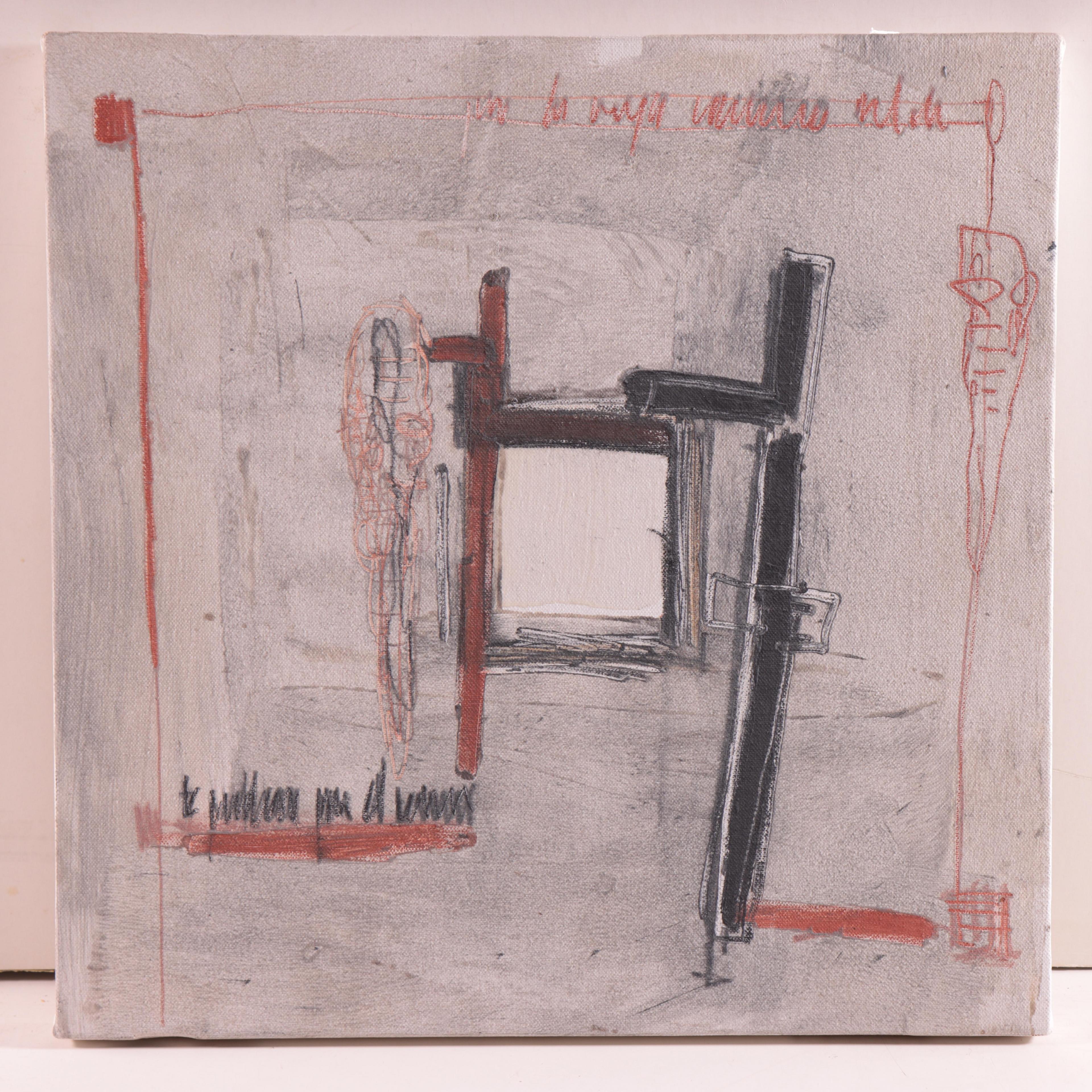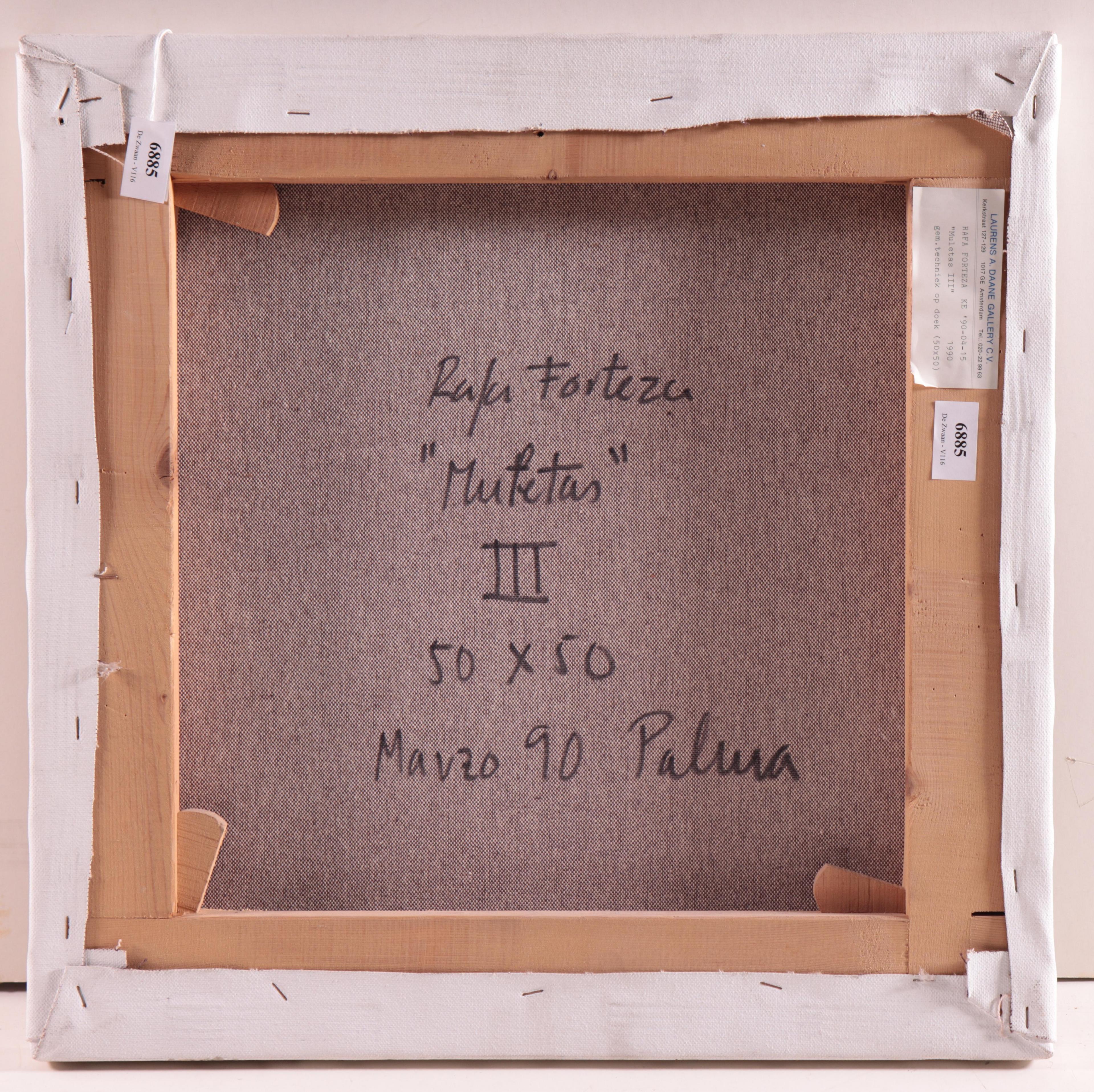 doek, niet ingelijst, verso gesigneerd, '90, 50 x 50 cm.