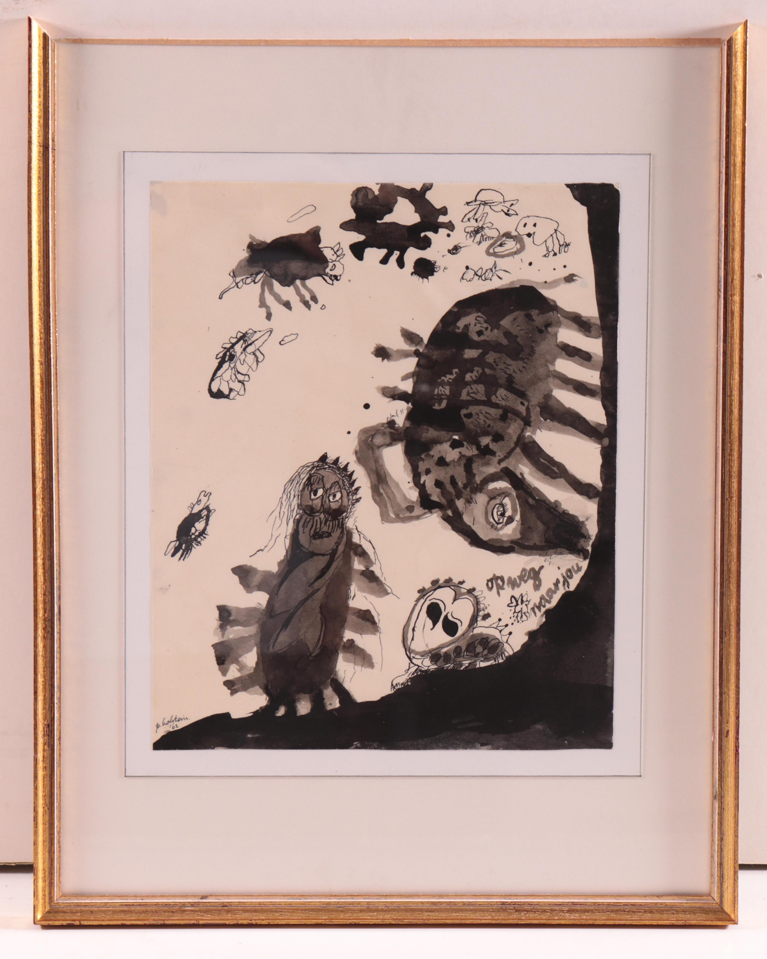 viermaal inkt en aquarel, deels gesigneerd, allen ca. 30 x 25 cm.
