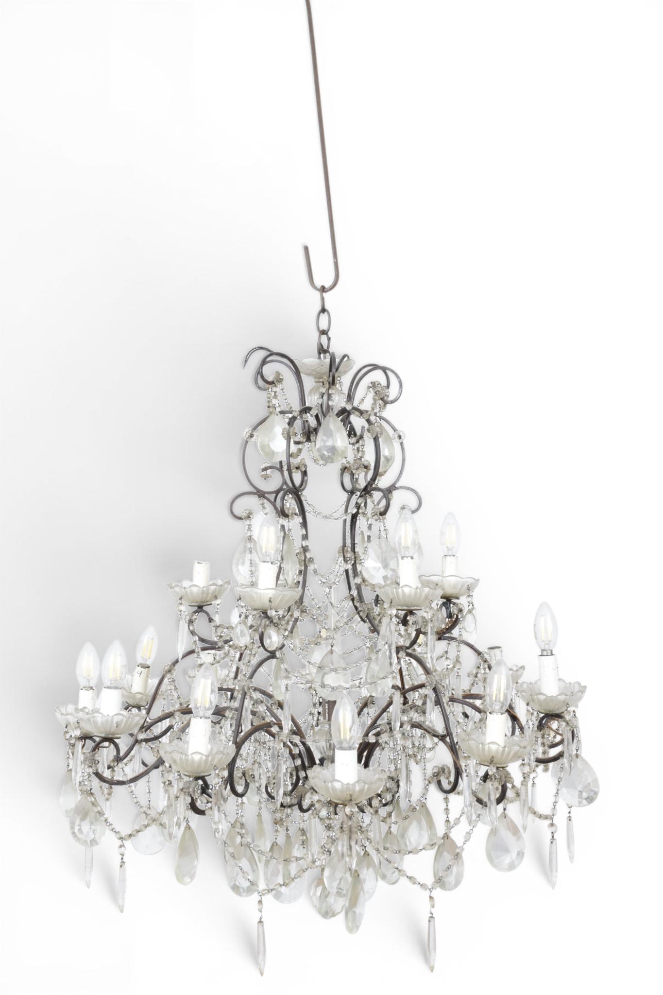 Smeedijzeren geëlektrificeerde achttienlichts kaarsenkroon, circa 1900,