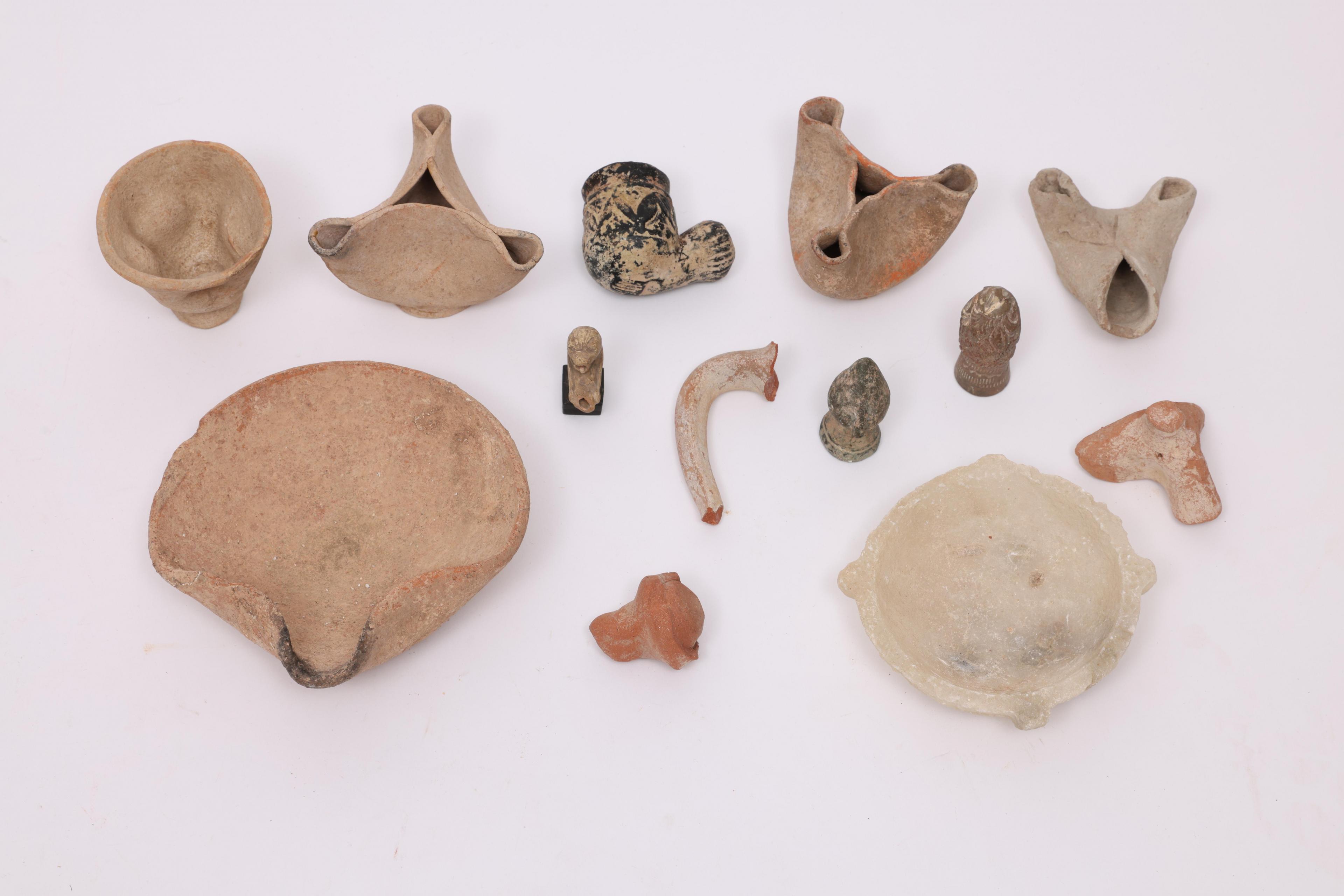 a.o. four Punic three nozzle oillamps, a brons knob of a walking stick.