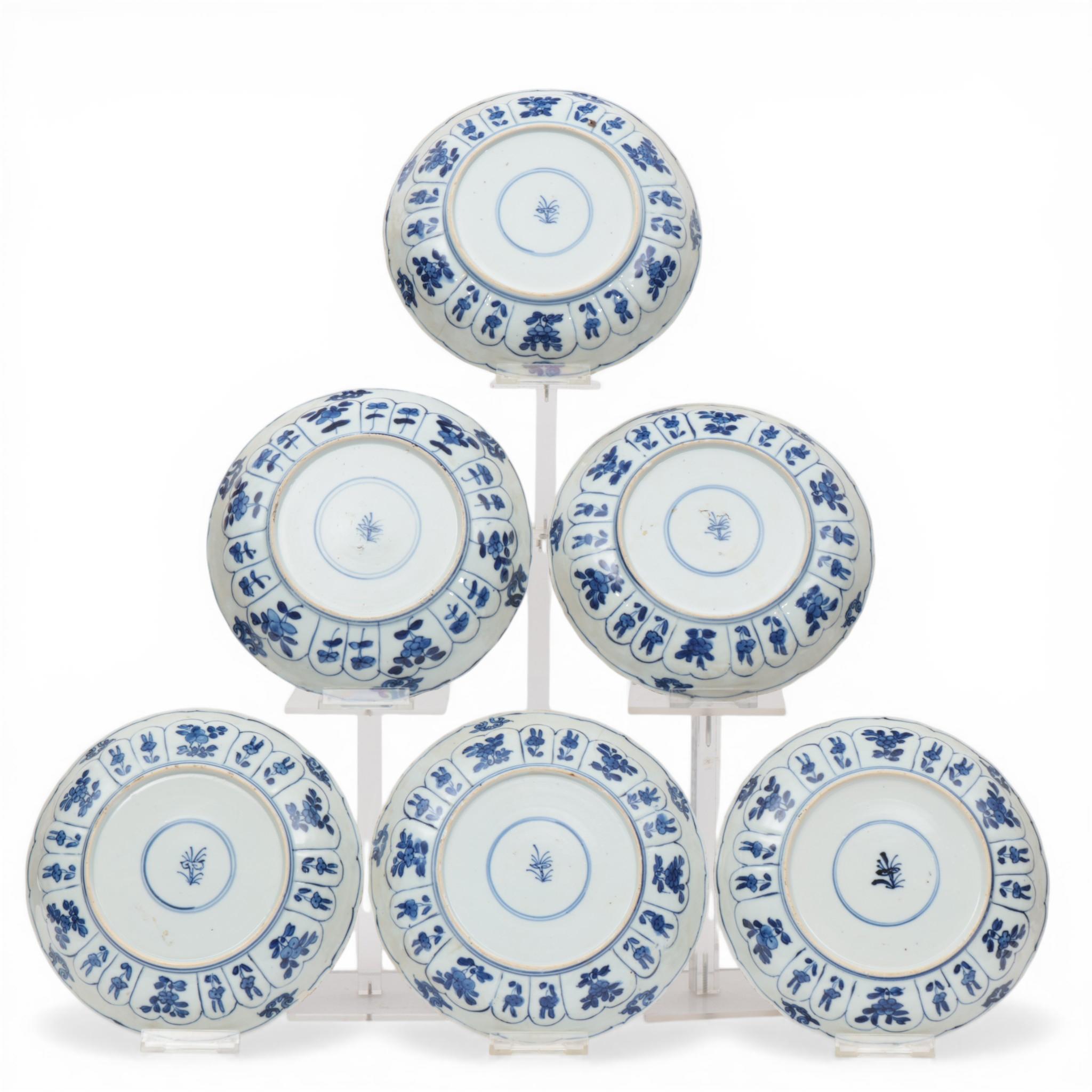 China, a set of six blue and white porcelain plates, Kangxi period (1662-1722),