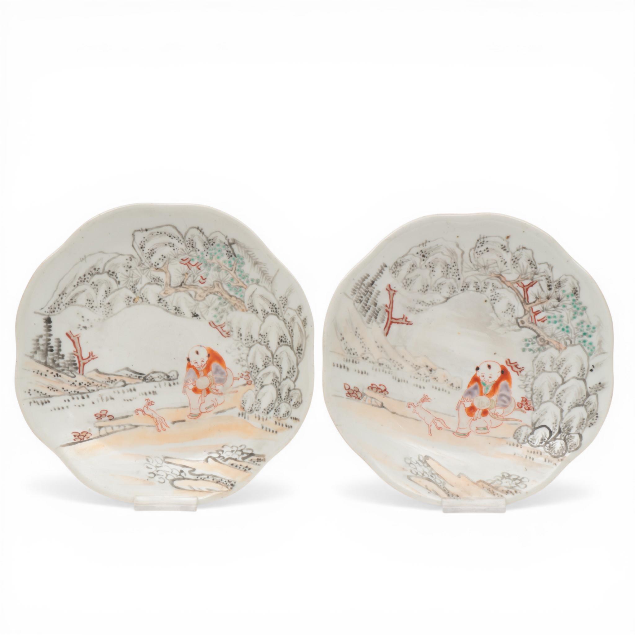 Japan, a pair of polychrome-painted plates, 20th century,