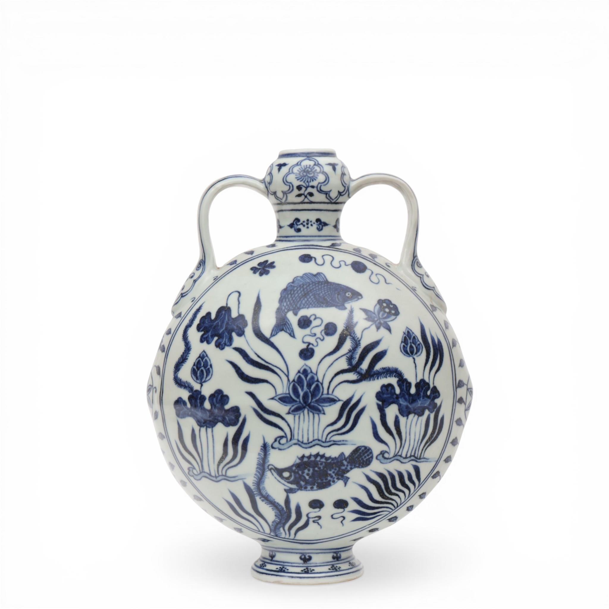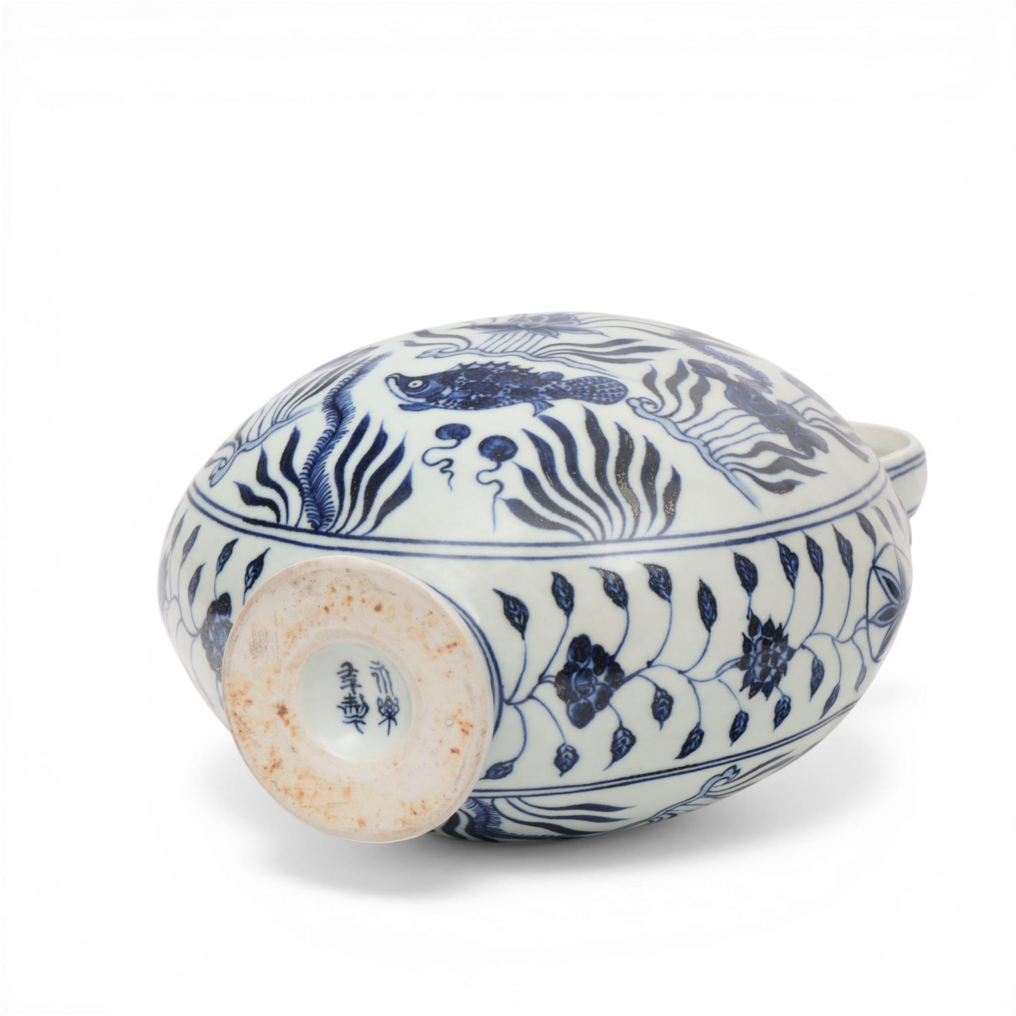 painted with fish among lotus and water-weeds, the base with a four-character mark