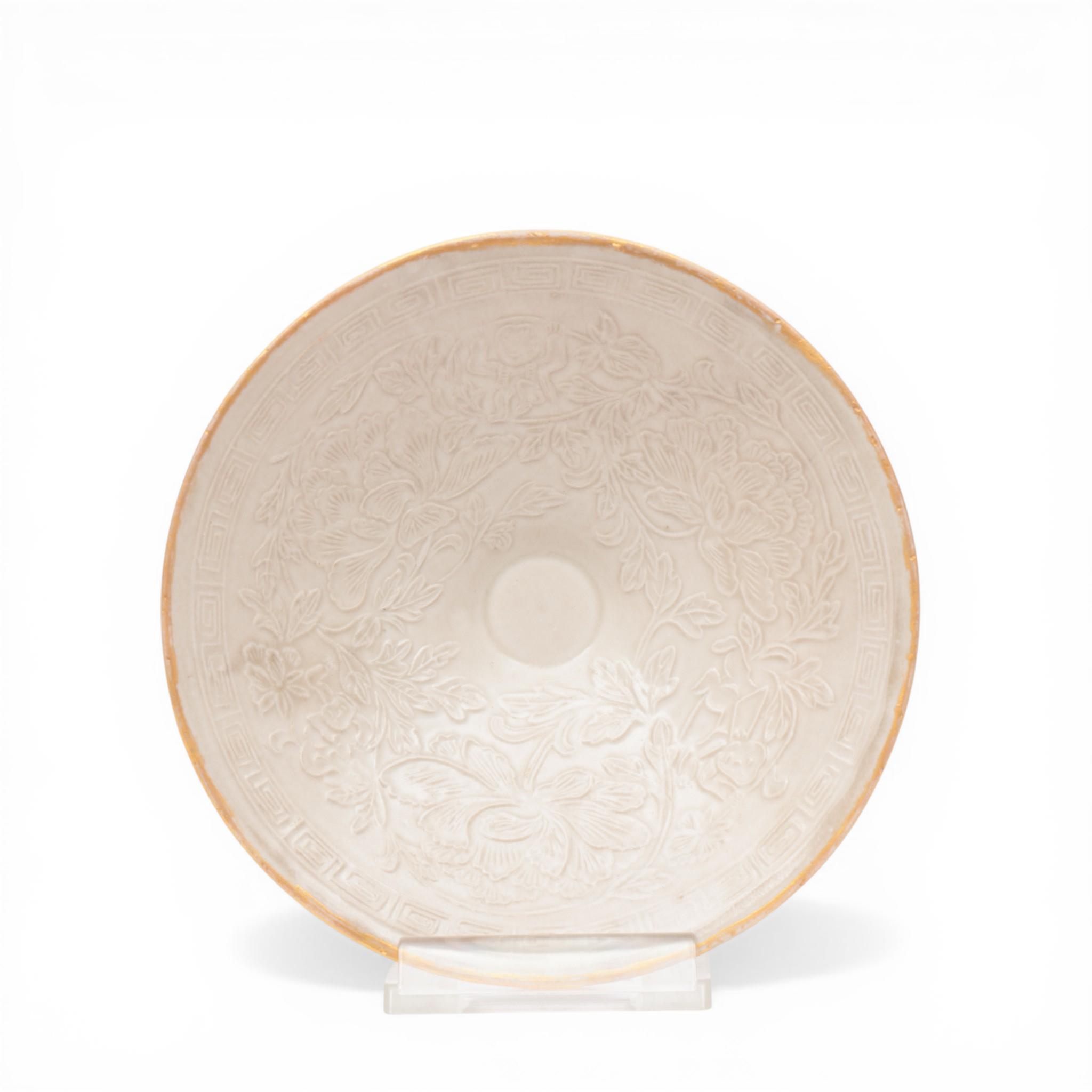 China, a Song-style cream-glazed moulded bowl, probably 19th century,