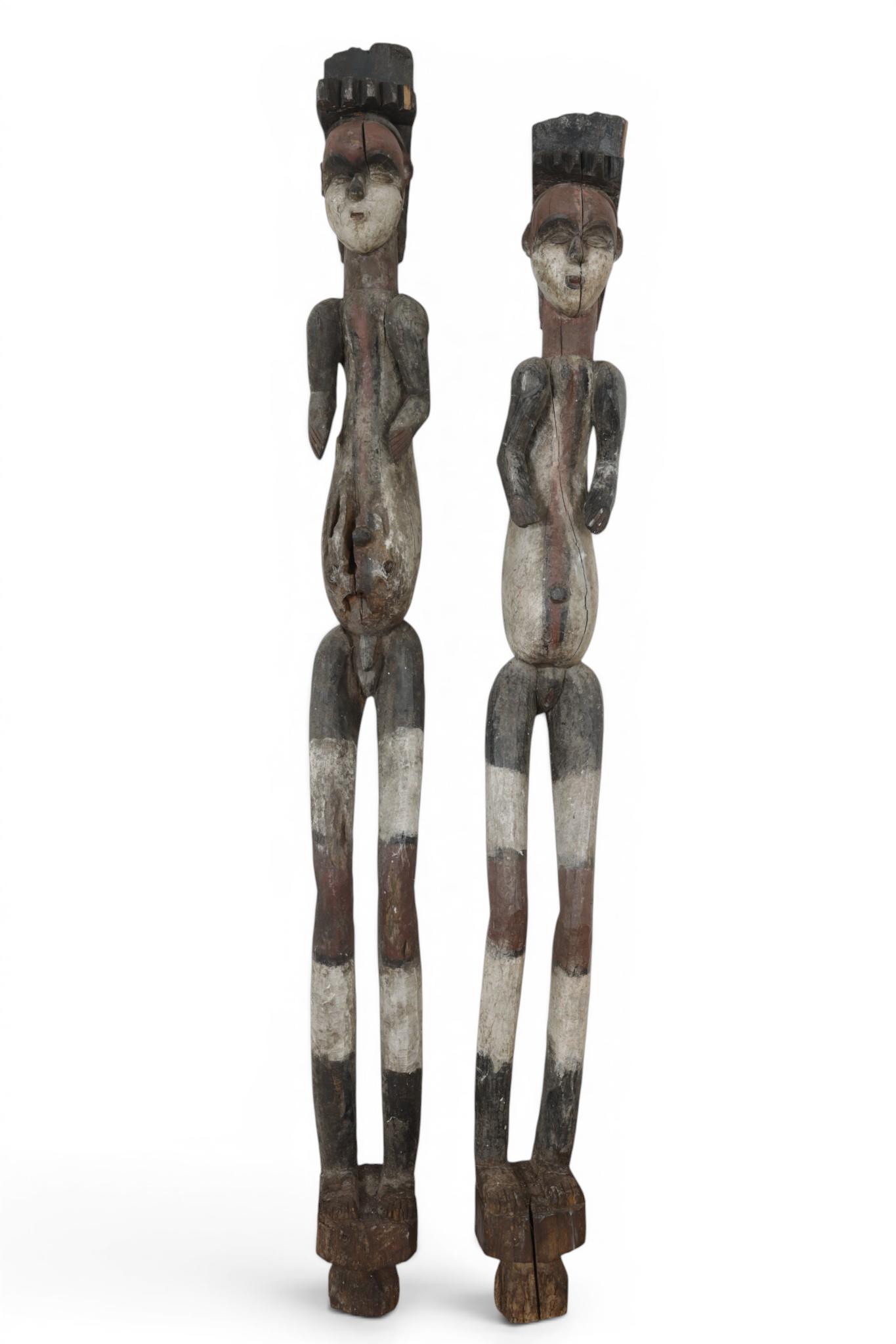 Two large African wooden statues painted in polychrome collors