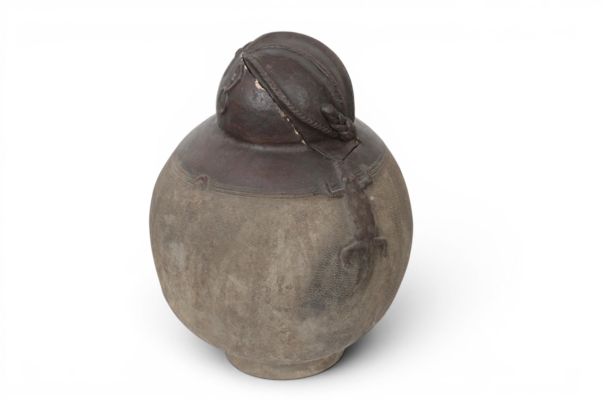West Africa, a large bulbous terracotta lidded storage pot