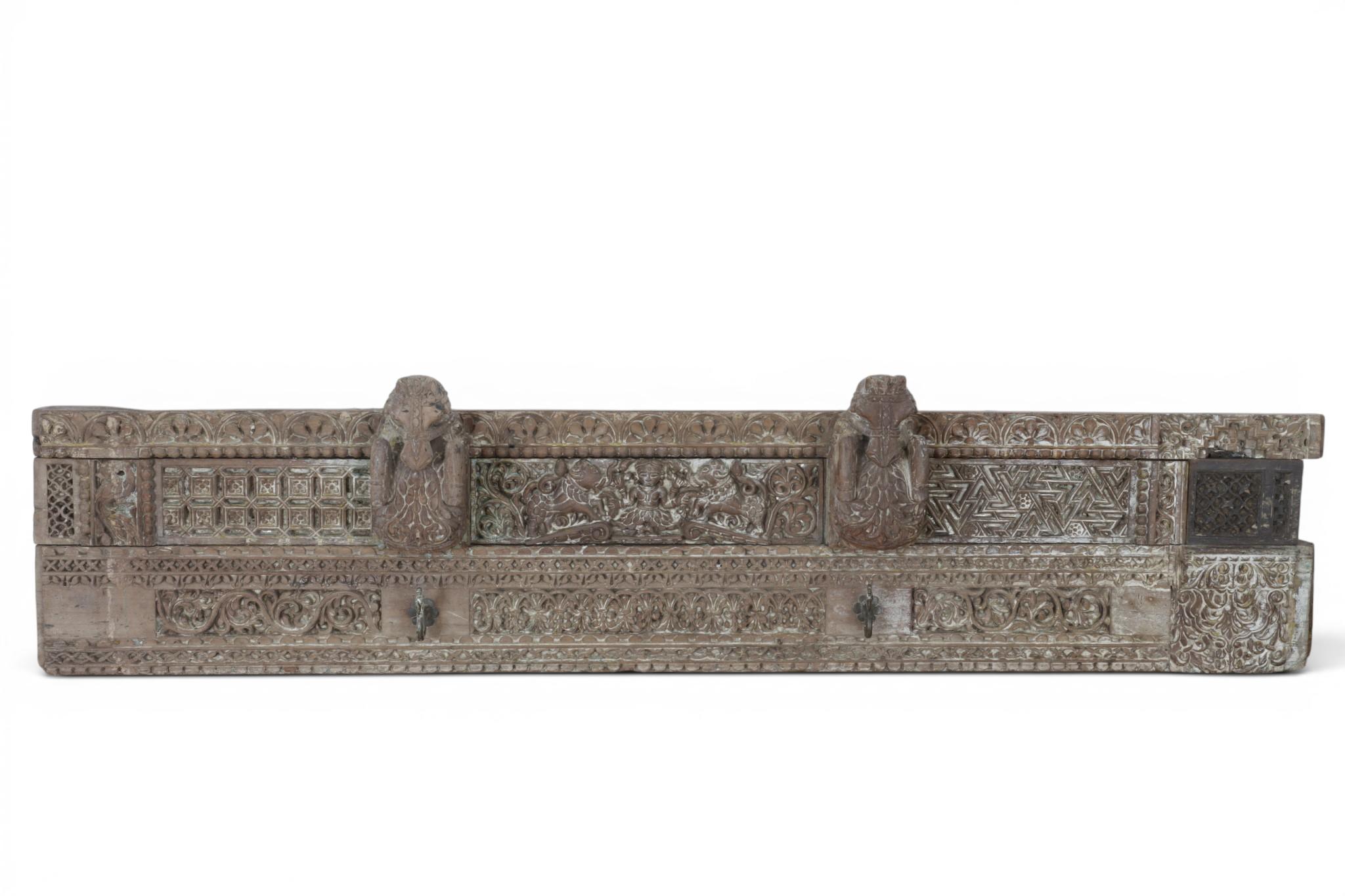 India, a fine carved wooden tempel beam, early 20th century,