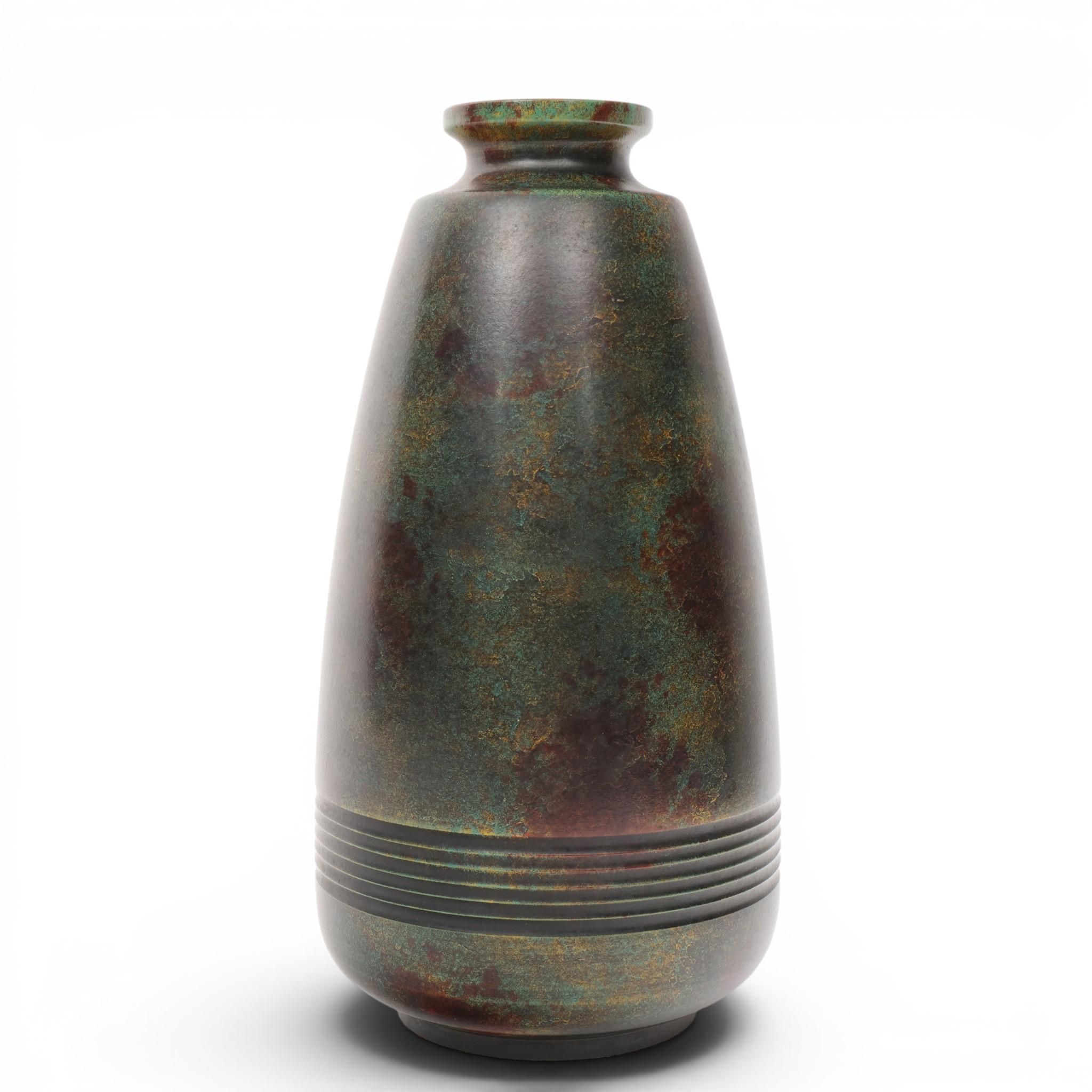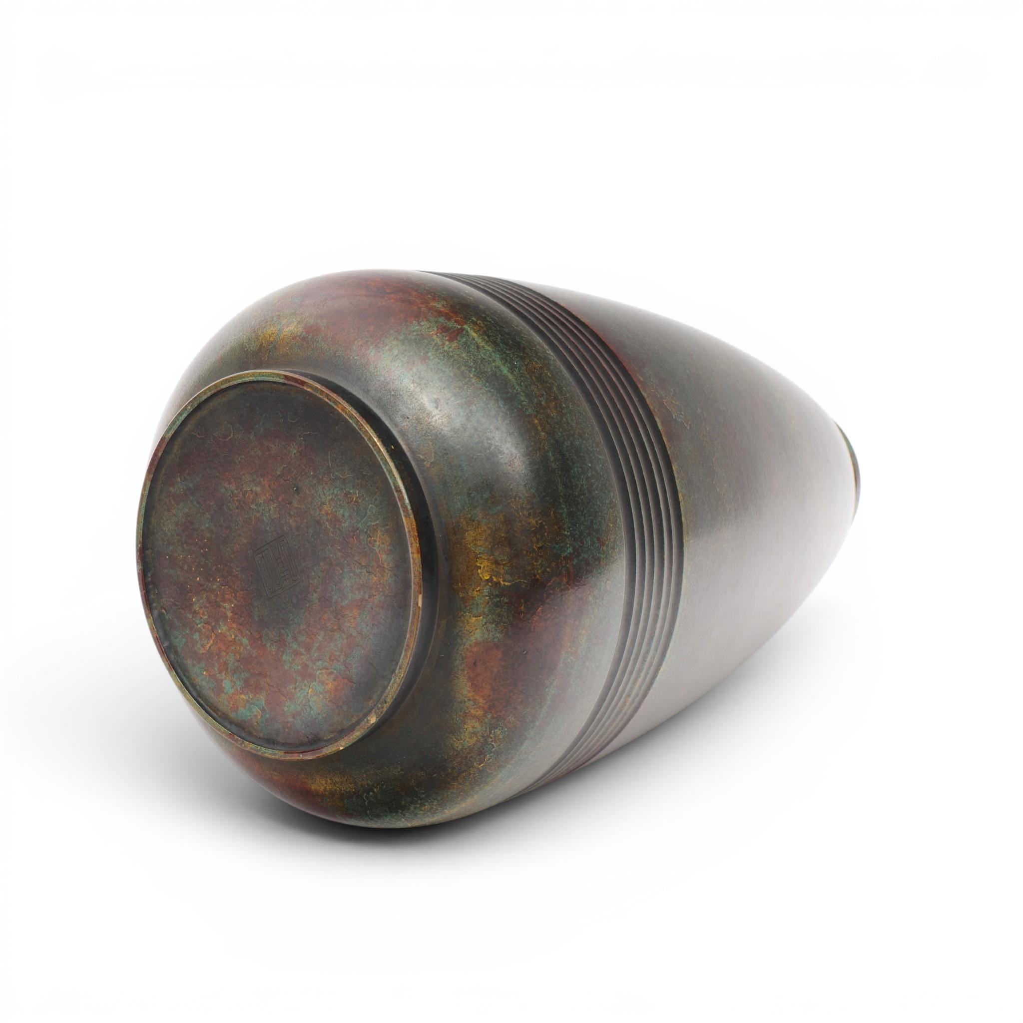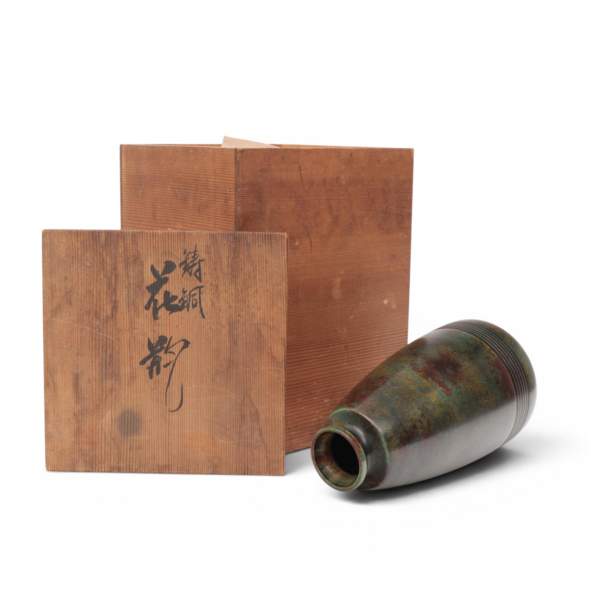 Japan, a green and brown patinated bronze vase, 20th century,
