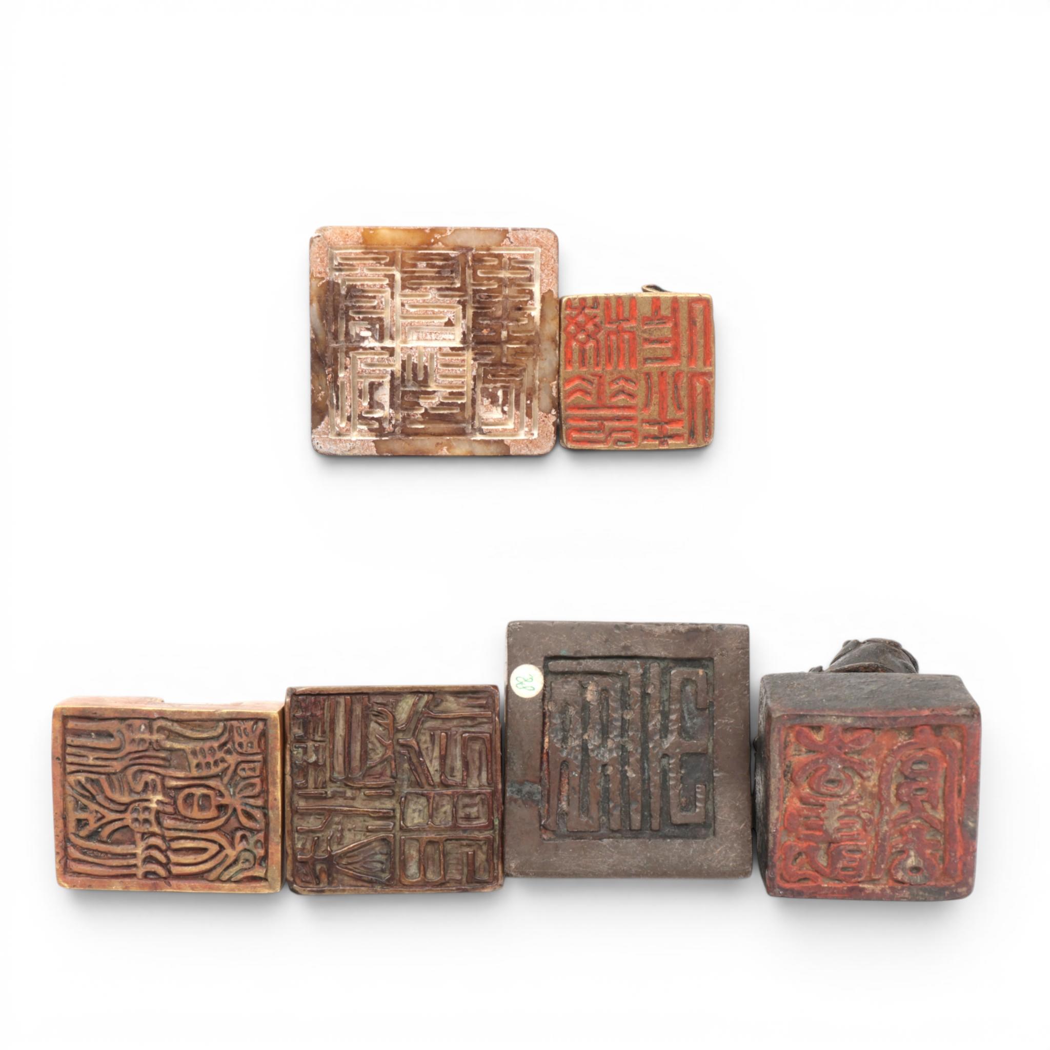 China, five various metal and jade seals, 19th-20th century,