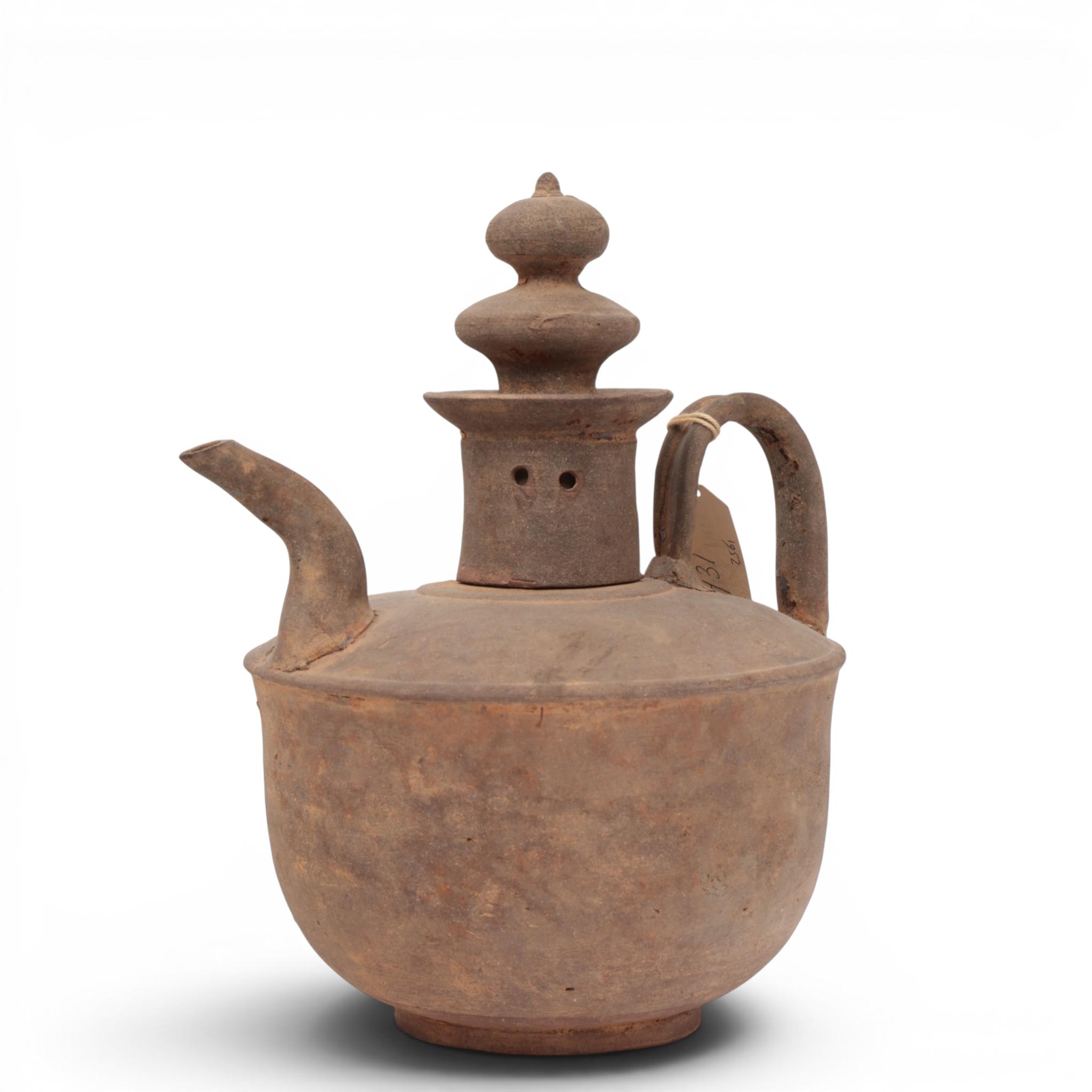 China, a pottery pouring vessel and cover, Han dynasty (206 BC-220 AD),