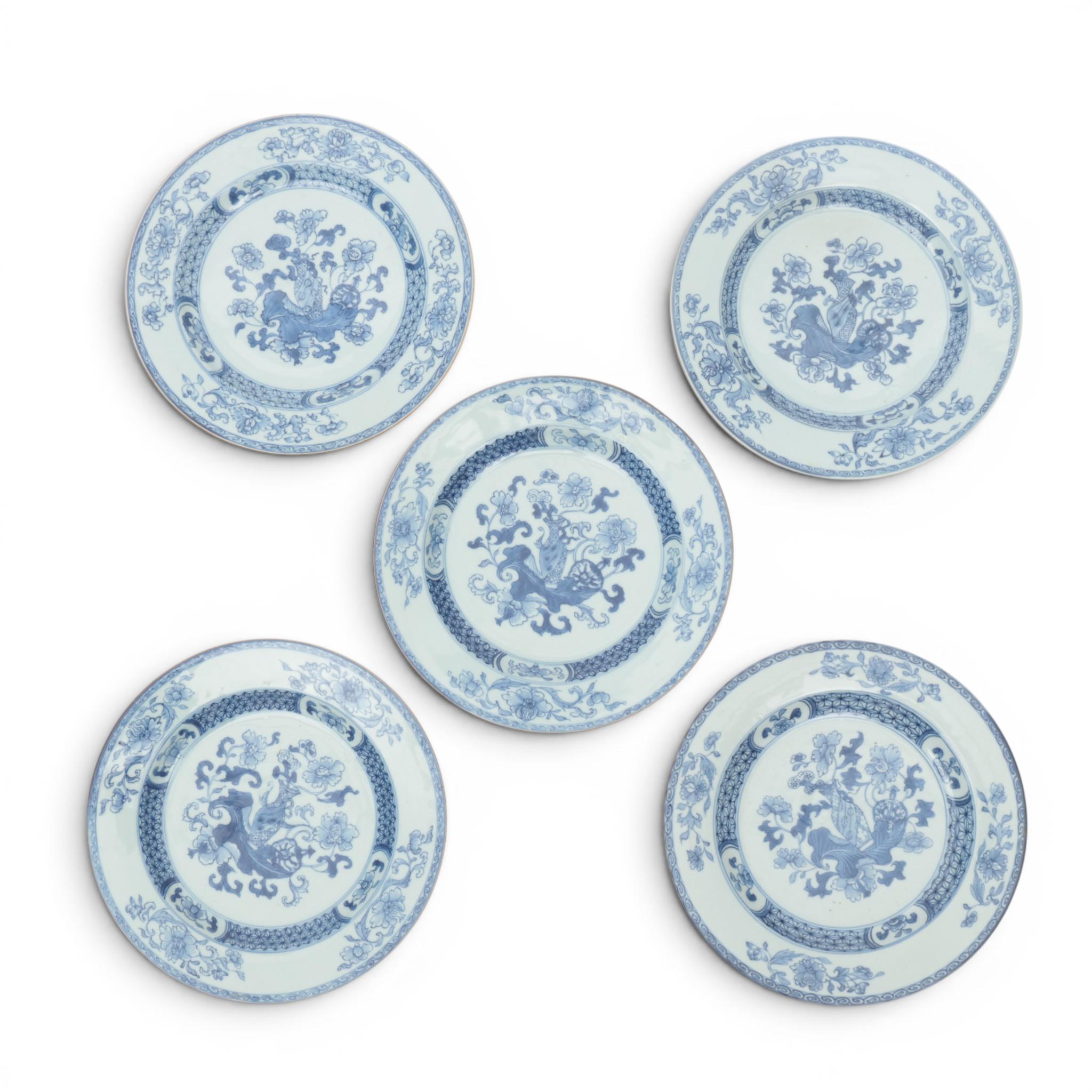 China, a set of five blue and white porcelain plates, Qianlong period (1736-1795),