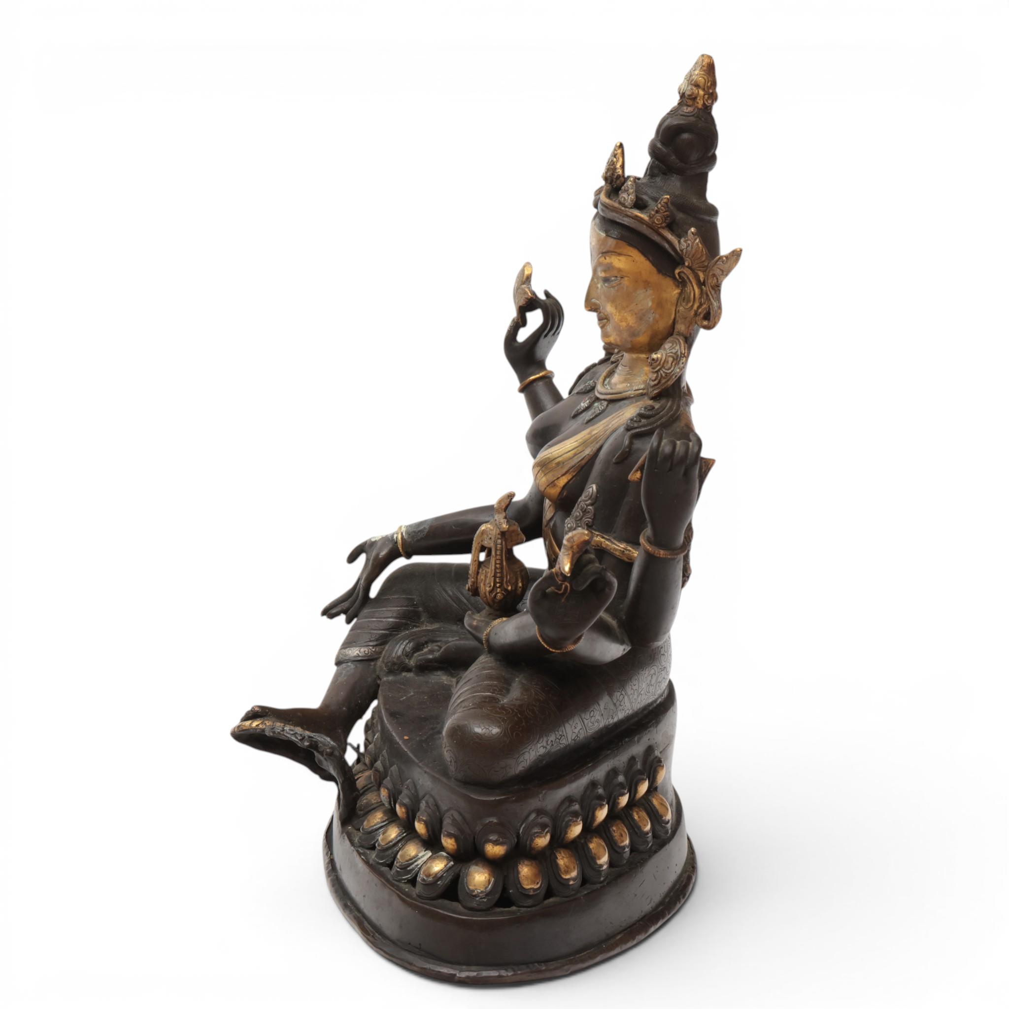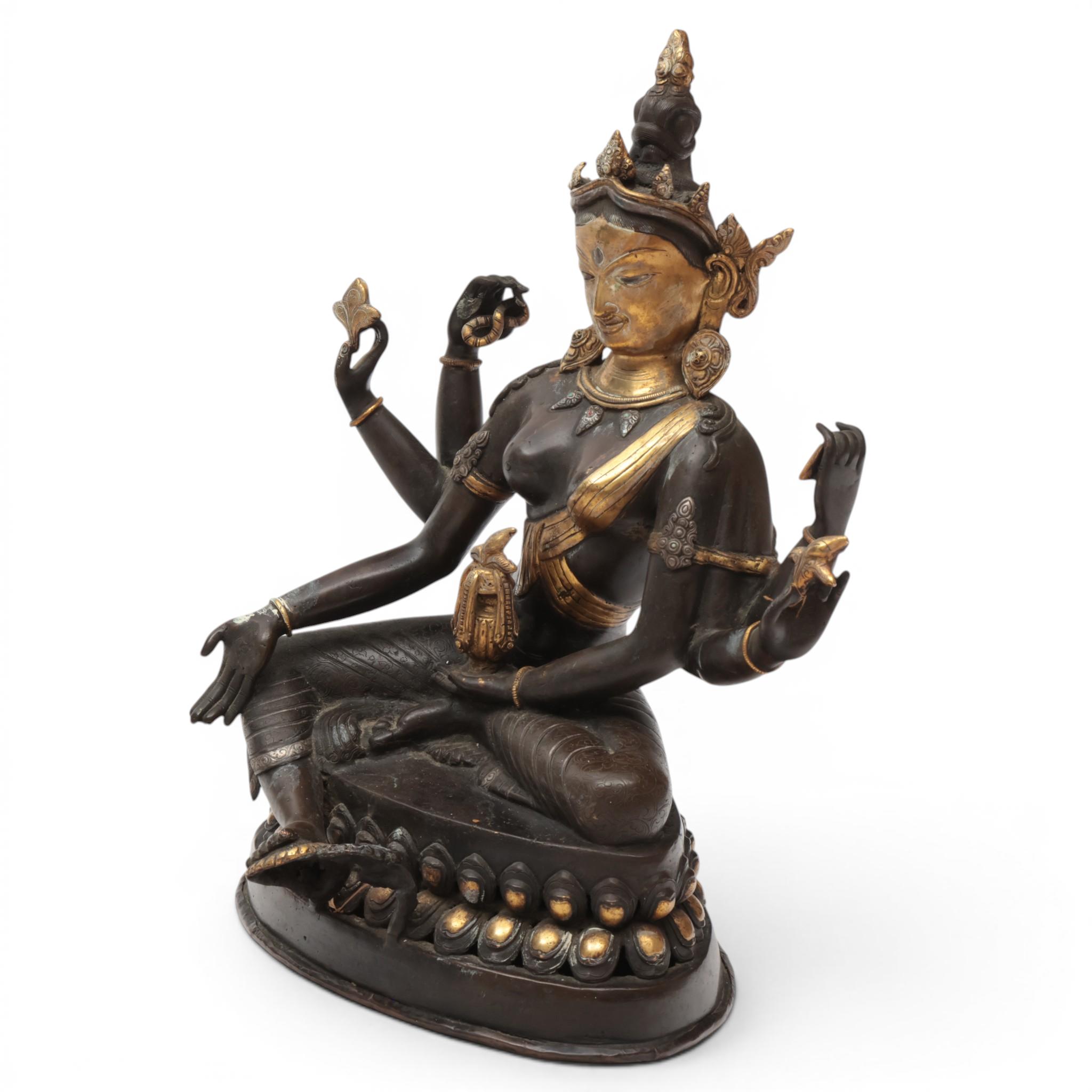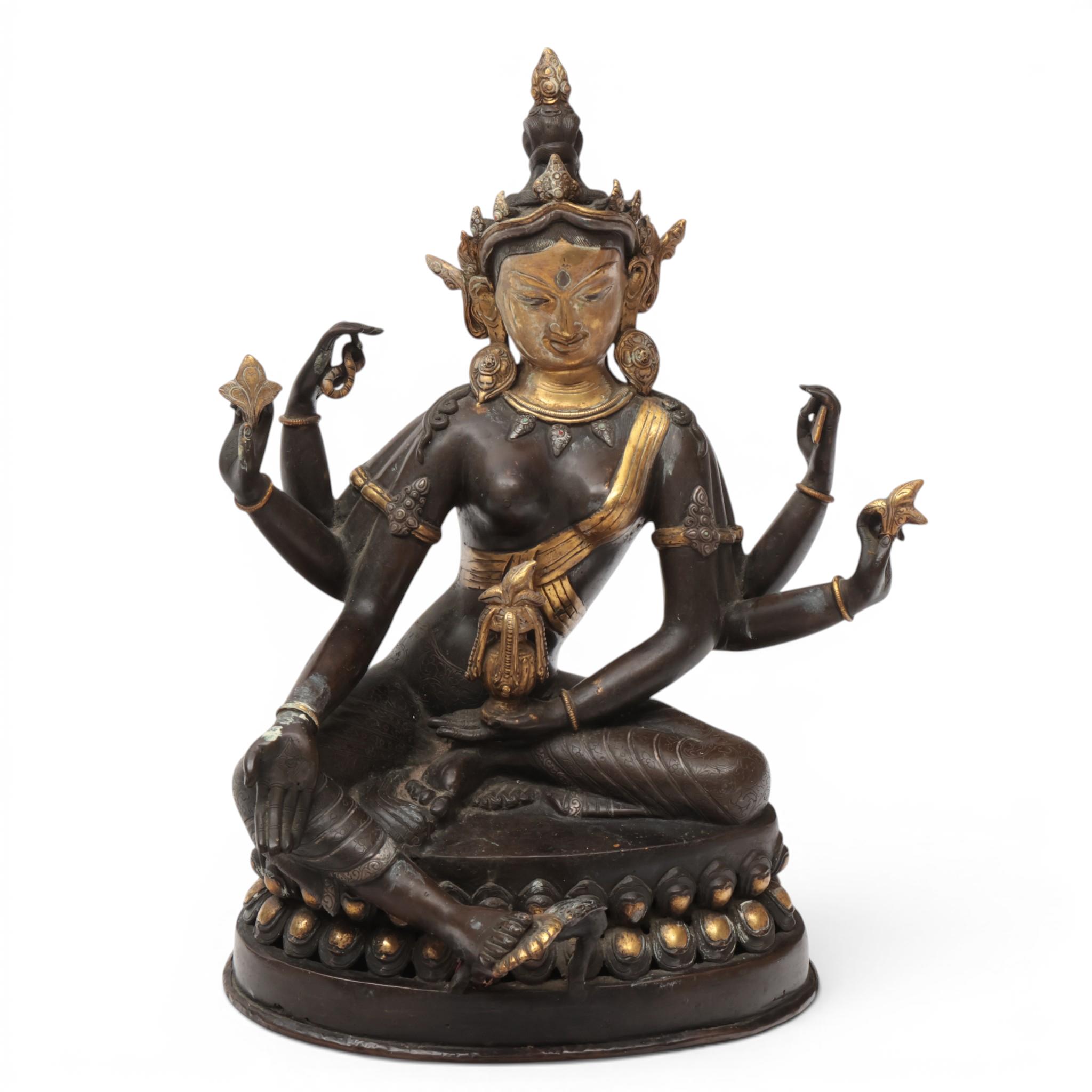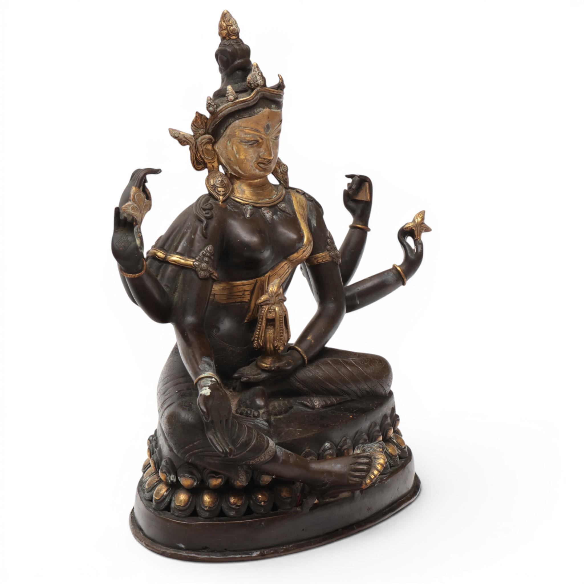 Nepal, a parcel-gilt bronze figure of Vasudhara,