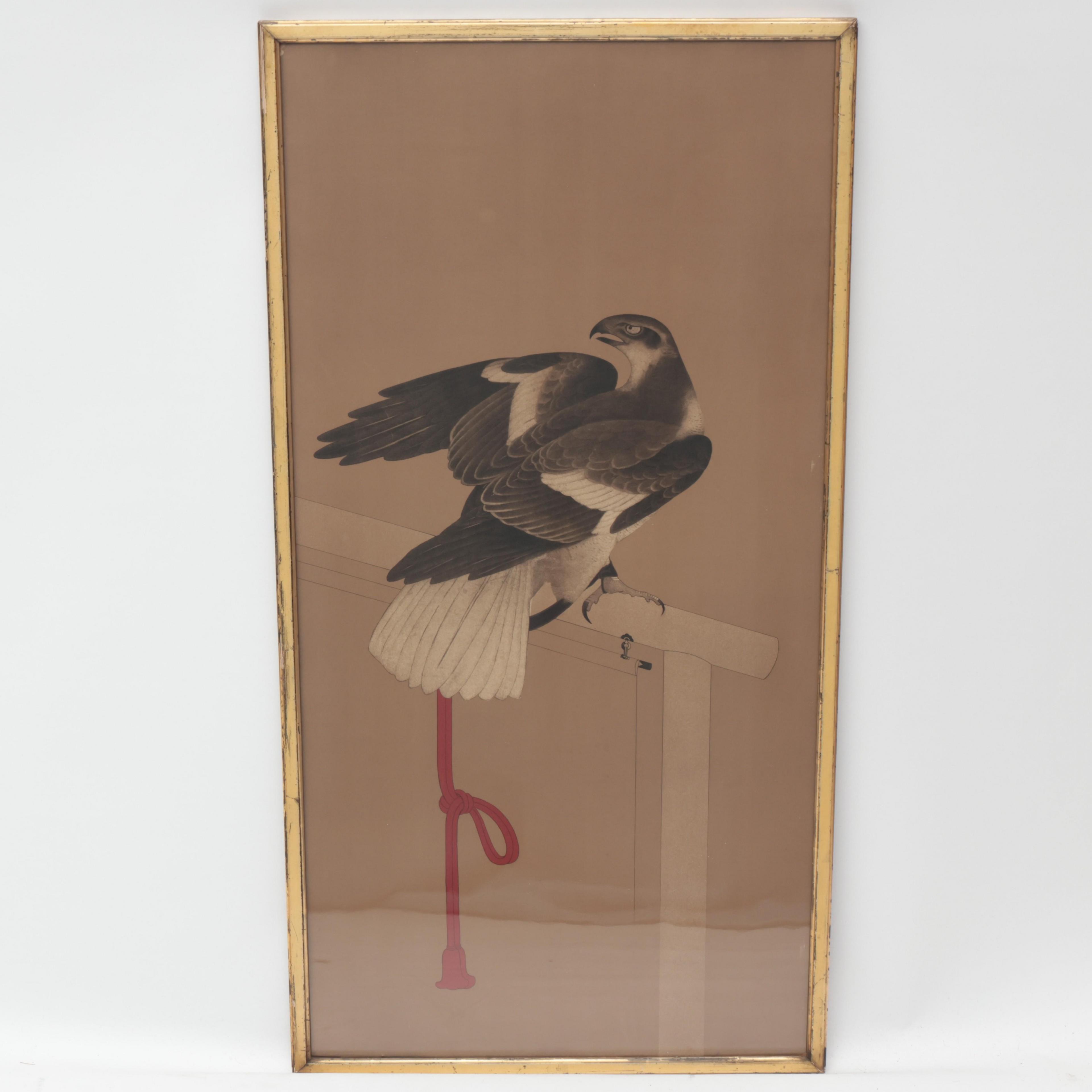 depicting a bird-of-prey seated on a stick, not signed, framed and glazed
