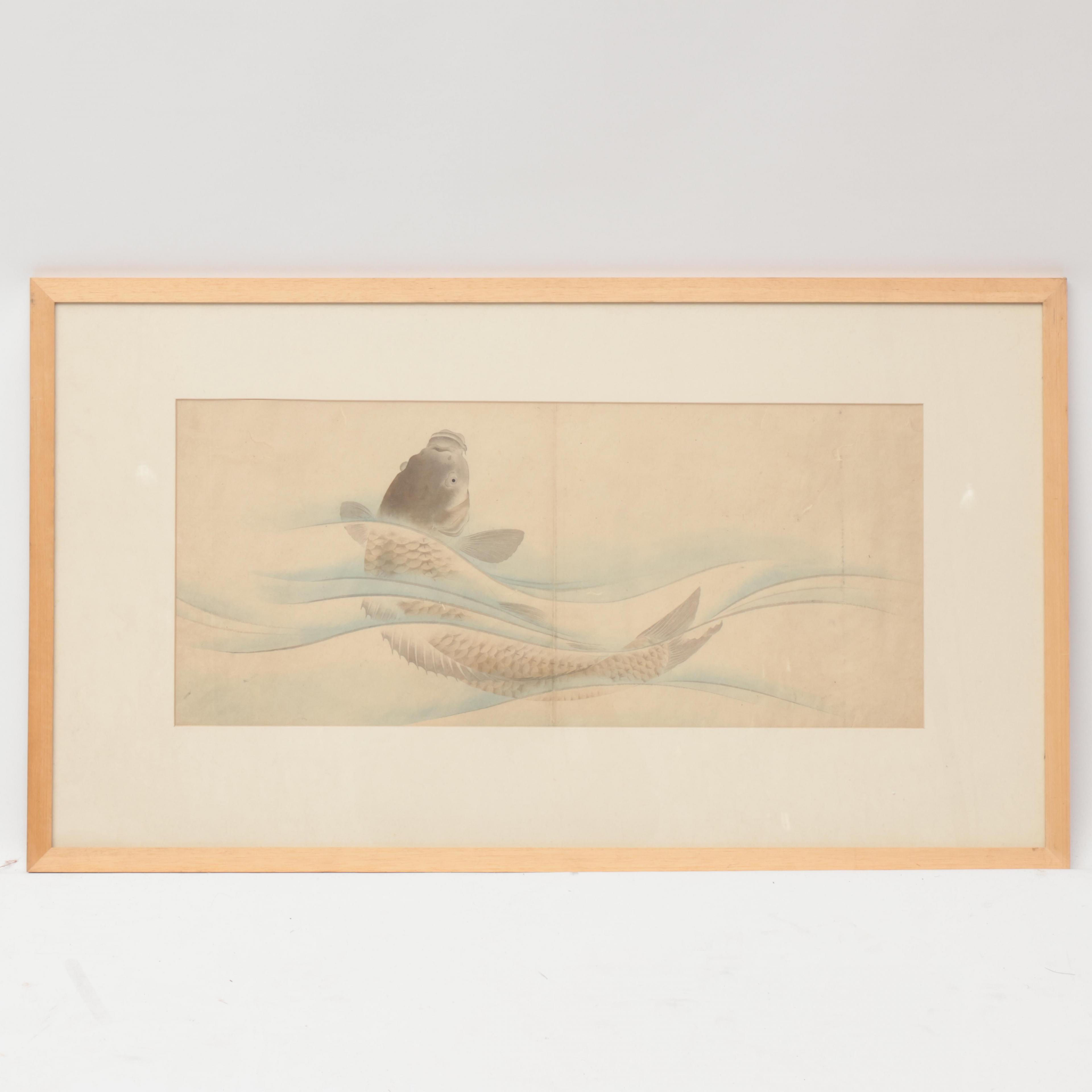 depicting a carp, not signed, framed and glazed (some tears and losses)