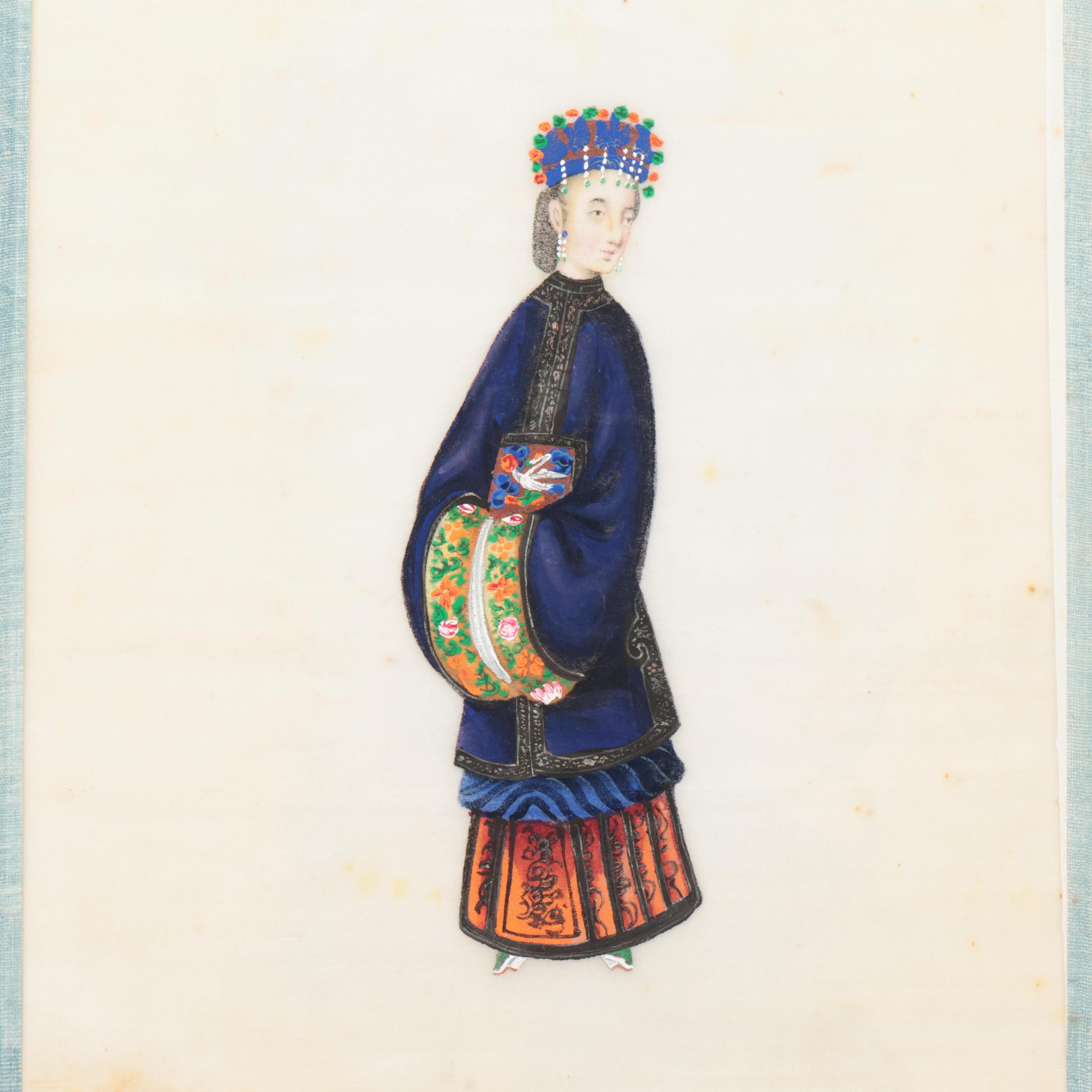 China, an export album of twenty pith-paper paintings, 19th century,