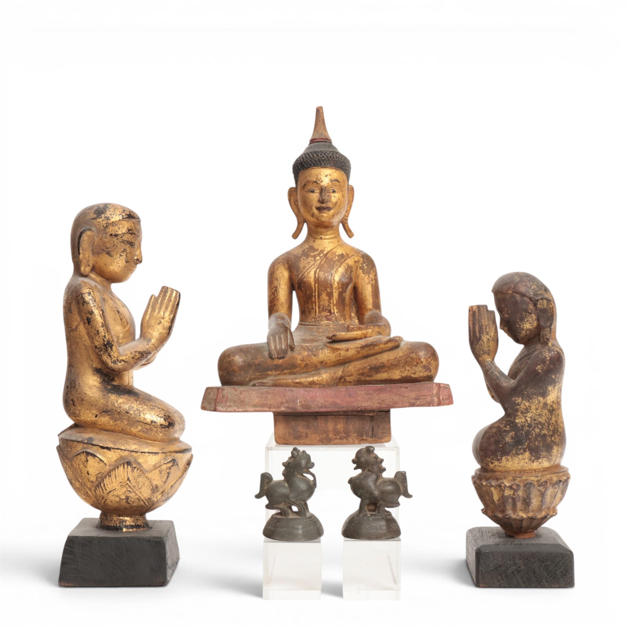 Burma, three gilt-wood figures of Buddha, 20th century,