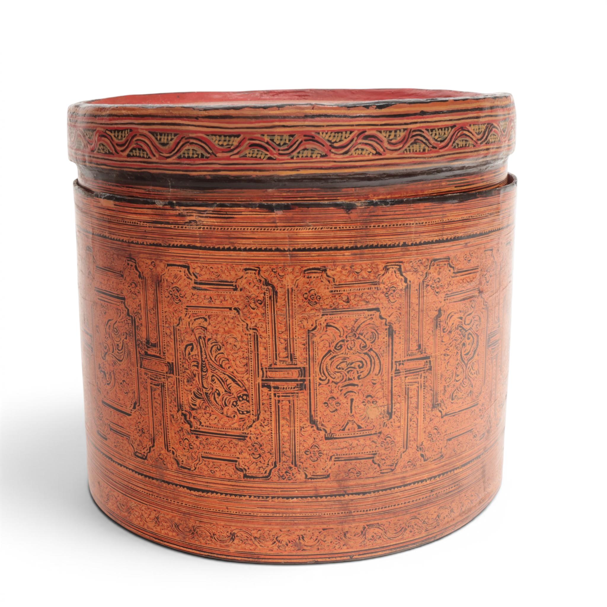 Burma, a lacquer box with gilt decoration, early 20th century,