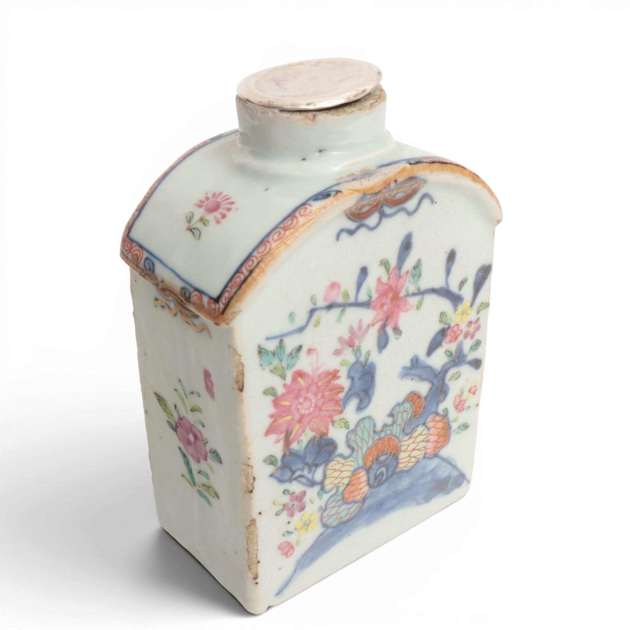 China, two porcelain tea-caddies and silver covers, ca. 1800,
