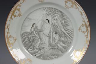 China, grisaille and gilt porcelain 'mythological' plate, ca. 1745, decorated with 'the choice of Hercules' (small glaze crack)