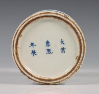 gedecoreerd in 17e-eeuwse stijl met geleerden aan een tafel in een landschap, met apocrief Kangxi merk