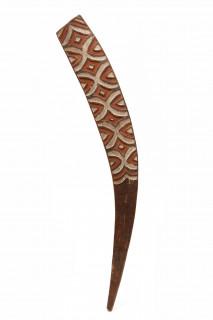 With tapring end and decorated on both sides with triangular and rhombic shapes. Collected in situ by a missionary living in the area around Tiau, Tijtak region, between 1982-1992
